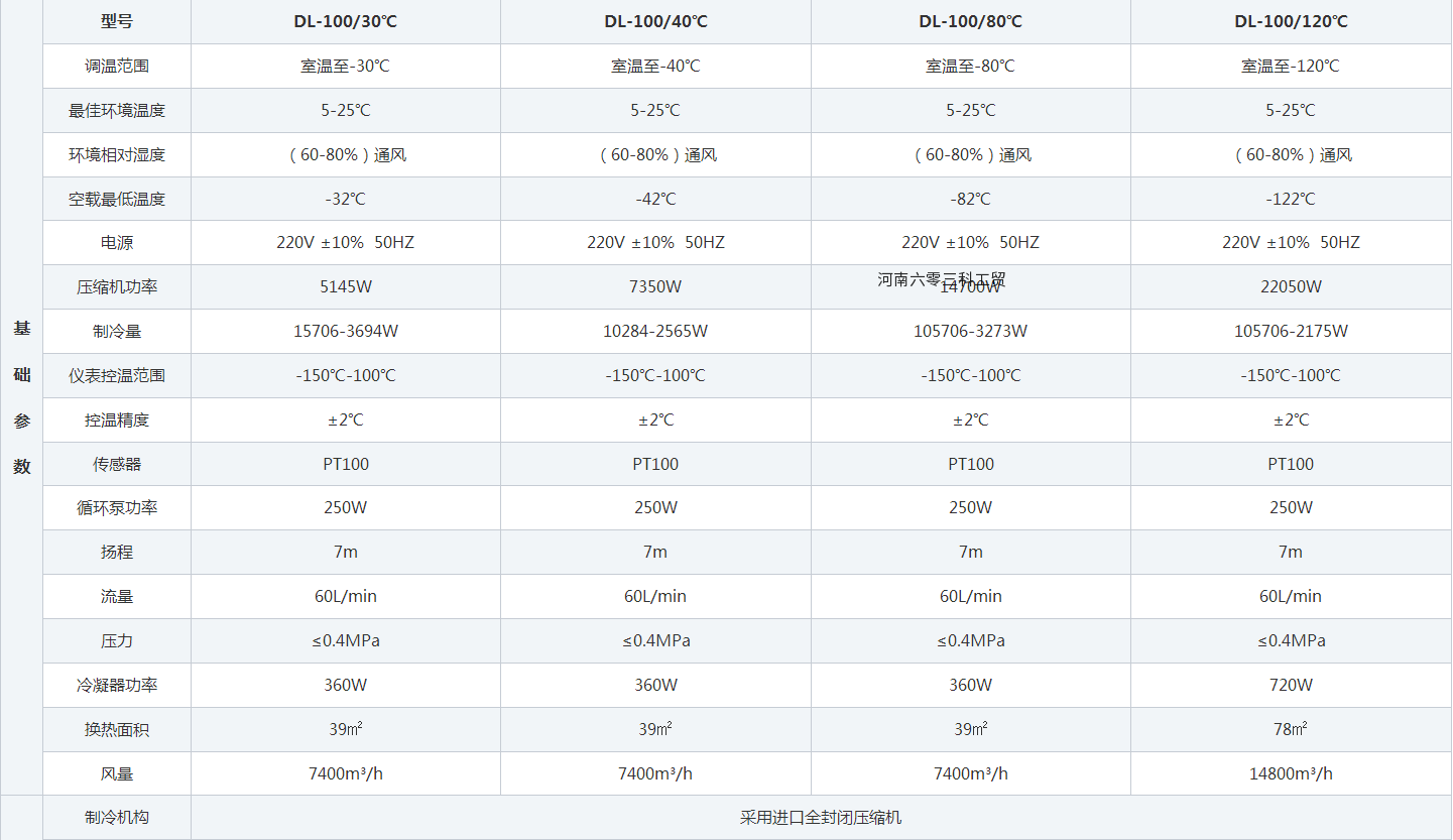 产品介绍DL-100L 30~120℃密闭低温冷却液循环泵,容量为100升,提供低温-30℃~-120℃各类产品,密闭型低温冷却液循环泵是一种采用风冷式全封闭压缩机组制冷及微机智能控制系统的机械设备,它主要作用是在试验过程中使液体快速降温。跟普通的低温冷却液循环泵不同的是,它不能直接在槽内进行低温试验,必须同其它的设备或者仪器进行搭配使用。