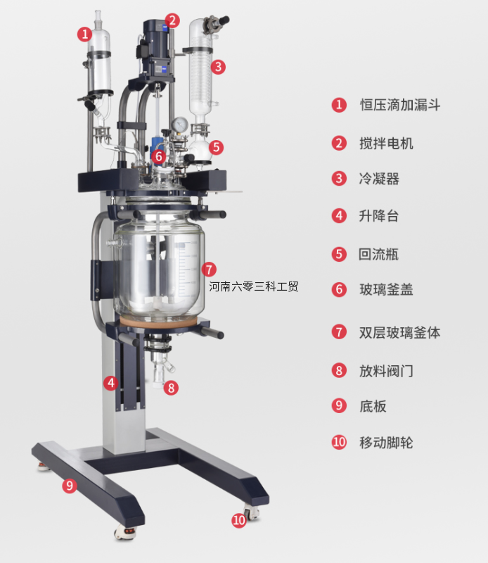 【产品属性】:升降型 双层玻璃反应釜 10~50升
