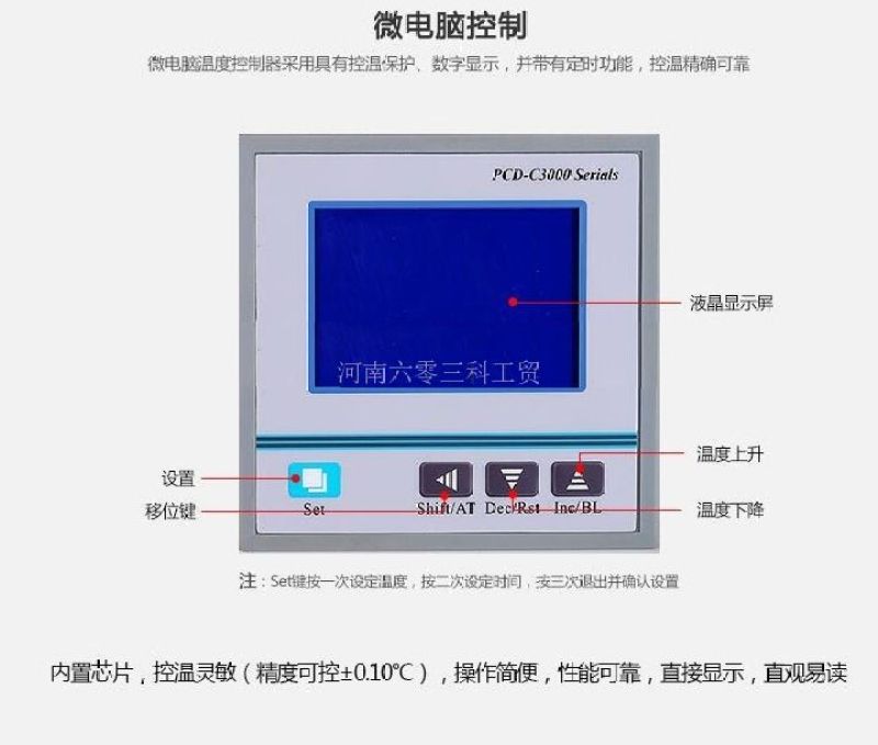 | 2、采用具有超温偏保护、数字显示的微电脑P.I.D温度控制器,带有定时功能控温精确可靠; | |